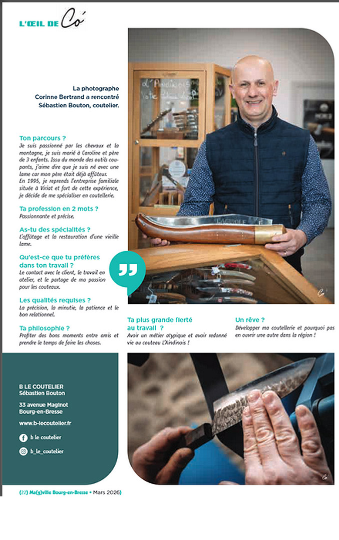 La photographe Corinne Bertrand a rencontré Sébastien Bouton, coutelier à Bourg-en-Bresse.